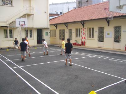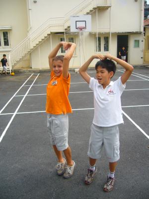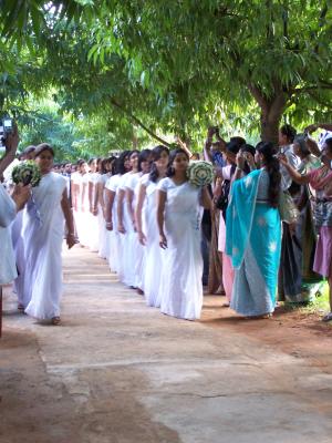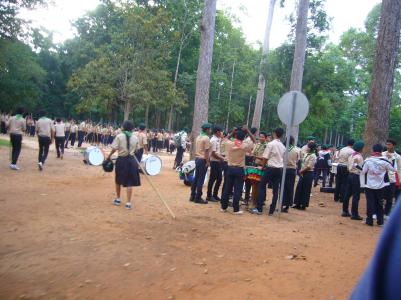 Auch schön war die nebenan stattfindende vormilitärische Übung für kambodschanische Schüler. Ungefähr 1000 Schüler, die mit Stöcken statt Gewehren – immerhin! – Salutieren und Marschieren üben, sicherlich auch eine großartige Beschäftigungstherapie für Freistunden... :)