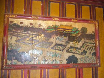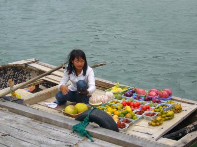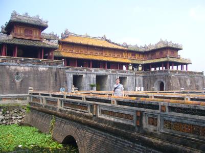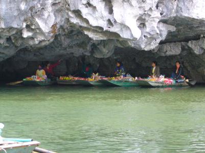 Wir saßen also gemütlich beim Essen als plötzlich das (elektrische) Licht in der Altstadt ausging und überall Lampions und Kerzen angemacht wurden. Letztere haben dann auch bald den Fluß bevölkert, da viele kleine (geschäftstüchtige) vietnamesische Mädchen Papierschiffchen mit Kerzen verkauft haben.
