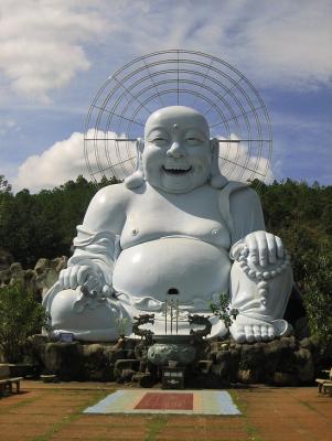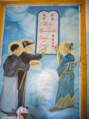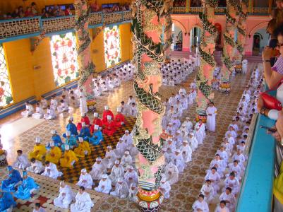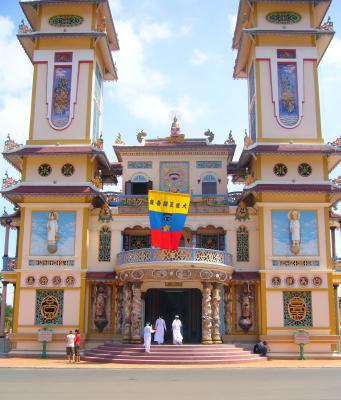 Die vietnamesischen Kirchen sehen sowieso sehr witzig aus, da alles (z.B. ein dezenter (grell) blauer Heiligenschein für Jesus) hübsch mit Neonfarben beleuchtet wird.