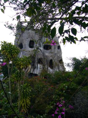 Nach den coolen Tagen in Banos, wo wir uns endlich mal wie Touristen gefühlt haben und neben Vulkanwanderung auch an Radlausflug entlang der Wasserfälle unternommen haben, sind wir am nächsten Tag nach Misahuallí einem Dorf mit Affen, unfreundlichen geldgierigen Menschen und Sekundärurwald (also zivilisierter Urwald) gefahren. Dort sind wir rumgewandert und haben schon einiges an Getier und Gepflanze gesehen und a bissl im hoteleigenen Pool geplanscht (der zugegebenermaßen schon ganz cool war, der Besitzer hat sogar die Hotelbar für uns aufgemacht aber zu dem Zeitpunkt waren wir längst pleite;). In Misahuallí sagen sich wirklich Fuchs und Hase gute Nacht. Um halb neun werden die Bürgersteige hochgeklappt, nur die Golden Gate Bridge im Miniaturformat leuchtet noch in den kitschigsten Regenbogenfarben.