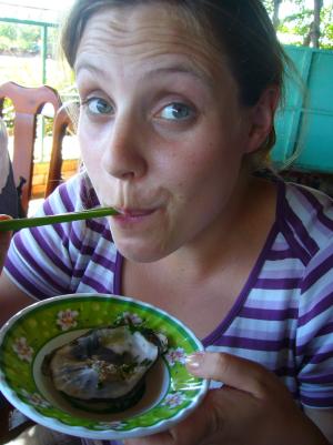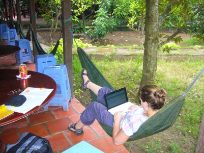 Von einem Spanier aus Zaragoza, den wir auf unserer Dschungelreise kennengelernt haben, haben wir erfahren, dass er in einen Busunfall in der Nähe der Küste verwickelt war (wegen schlafendem Fahrer war der Bus einfach umgekippt!) und die angerückte Polizei hat zum Teil sogar noch Gepäckstücke geklaut!! Die Polizei gilt in der Bevölkerung schon als ziemlich korrupt.. Überhaupt wird alles was man irgendwo liegen lässt sehr schnell mit an Sicherheit grenzender Wahrscheinlichkeit geklaut. So viel zur Sicherheitslage hier. Inzwischen hat das Militär grad mehr zu sagen, was beruhigend ist, aber nachts kann man in der Stadt nicht rumlaufen, und die Nacht beginnt leider schon sehr früh- um halb sieben! AAAAH!!
